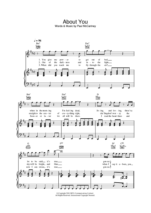 Digital Sheet Music for About You by Paul McCartney scored for Piano/Vocal/Chords; id:389234