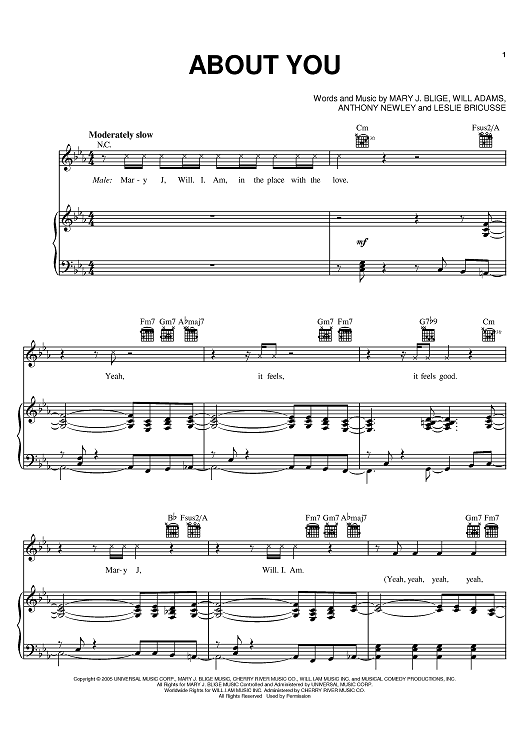 Digital Sheet Music for About You by Leslie Bricusse, Mary J. Blige, will.i.am, Anthony Newley scored for Piano/Vocal/Chords; id:395043