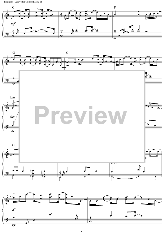Digital Sheet Music for Above the Clouds by Jim Brickman scored for Piano Solo; id:292235
