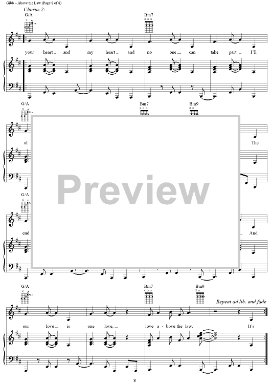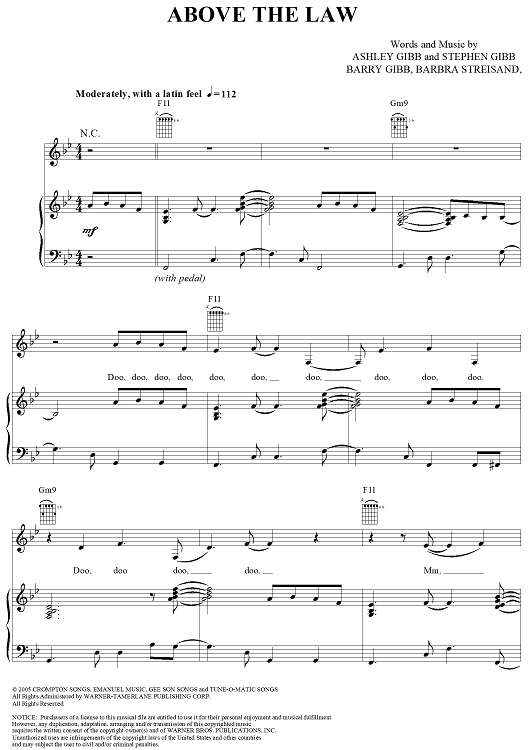 Digital Sheet Music for Above the Law by Barbra Streisand scored for Piano/Vocal/Chords; id:318194