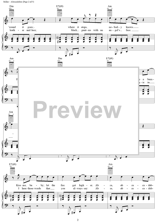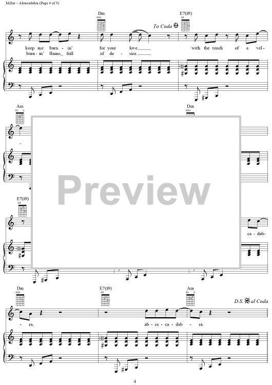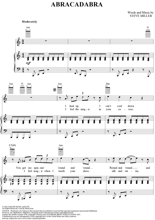 Digital Sheet Music for Abracadabra by Steve Miller scored for Piano/Vocal/Chords; id:250904