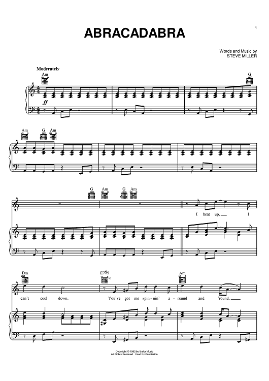 Digital Sheet Music for Abracadabra by Steve Miller, Steve Miller Band scored for Piano/Vocal/Chords; id:386218