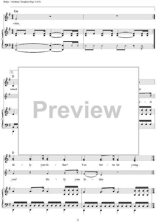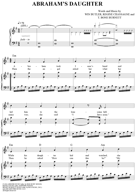 Digital Sheet Music for Abraham’s Daughter by T Bone Burnett, Win Butler, Regine Chassagne, Arcade Fire scored for Piano/Vocal/Chords; id:430126