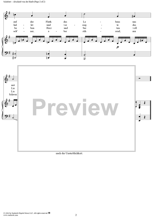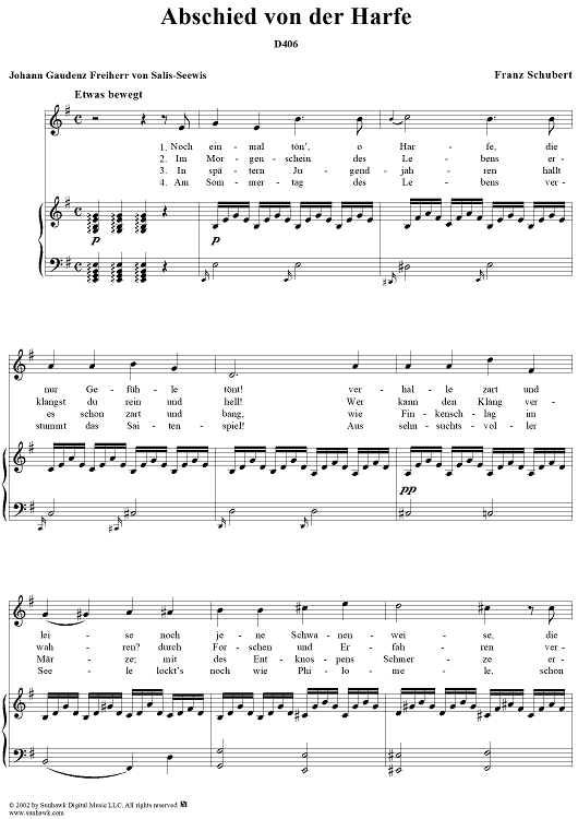 Digital Sheet Music for Abschied von der Harfe, D406 by Franz Schubert scored for Voice/Piano; id:256404