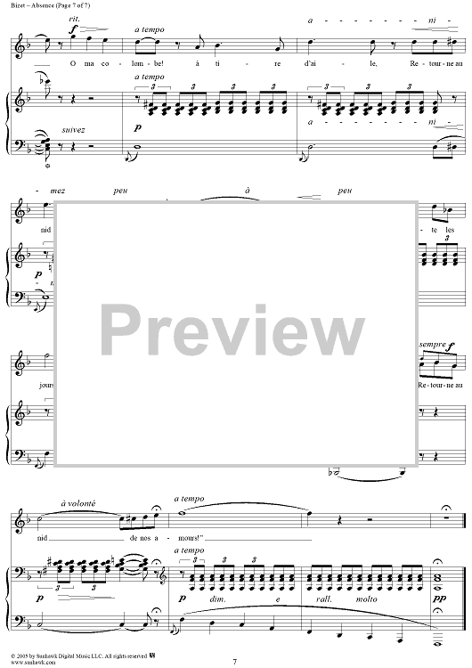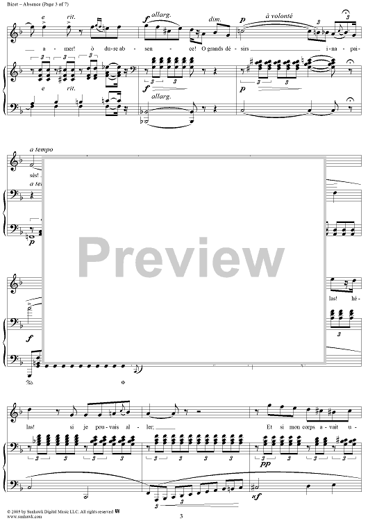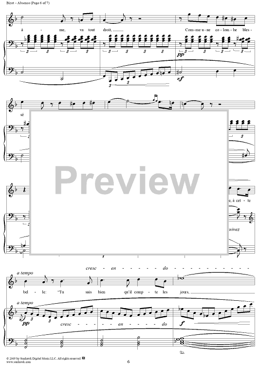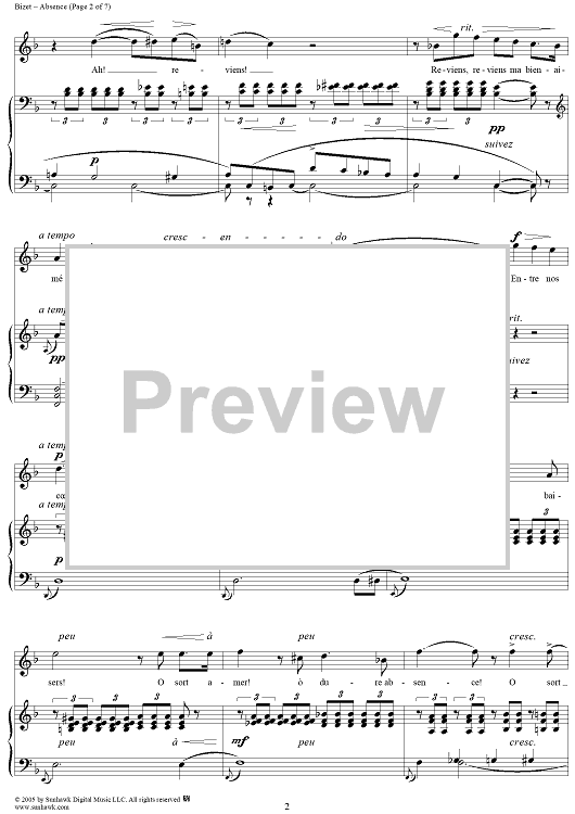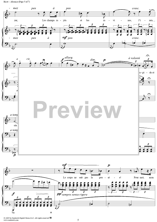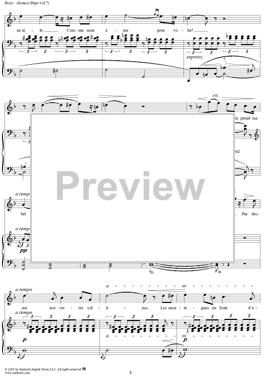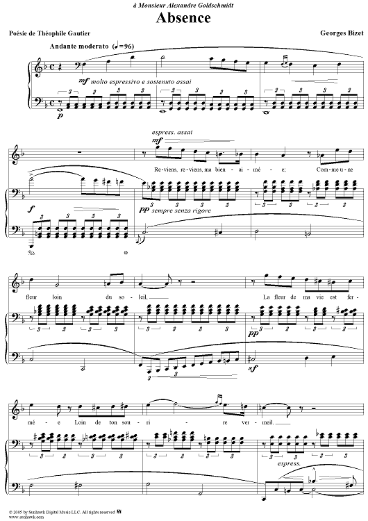 Digital Sheet Music for Absence by Georges Bizet, Théophile Gautier scored for Voice/Piano; id:305216