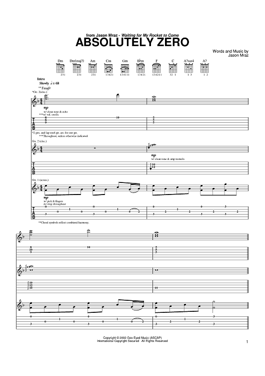 Digital Sheet Music for Absolutely Zero by Jason Mraz scored for Guitar Tab; id:384673