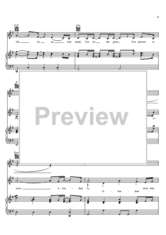 Digital Sheet Music for Abundantly by Avalon, Janna Long, Sam Mizell, Brian White scored for Piano/Vocal/Chords; id:374130