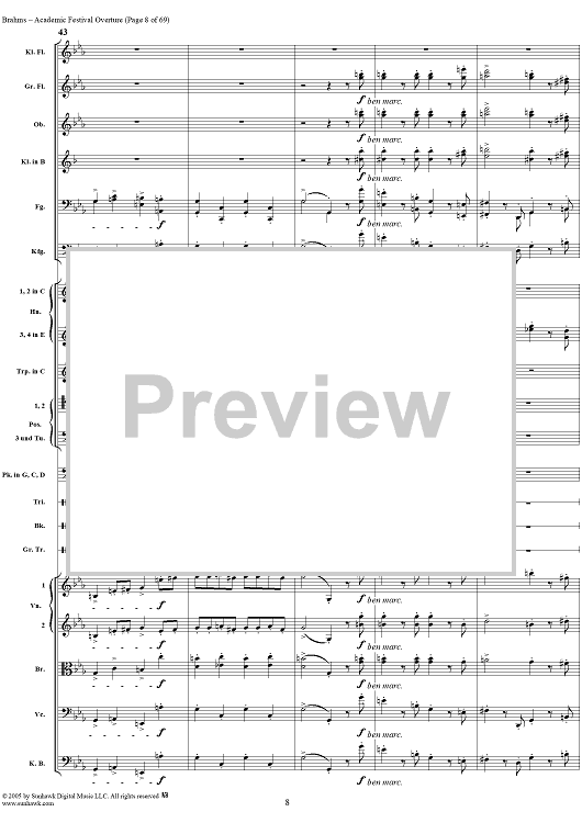 Digital Sheet Music for Academic Festival Overture - Full Score by Johannes Brahms scored for Orchestra; id:315149