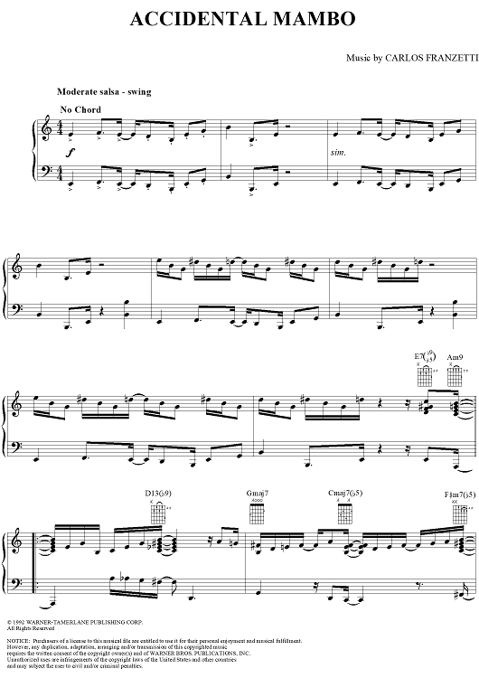 "Accidental Mambo" Sheet Music by Carlos Franzetti