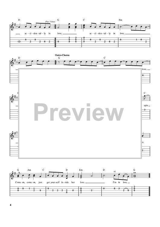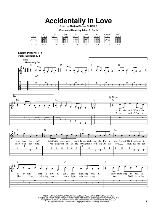 Digital Sheet Music for Accidentally In Love by Counting Crows, Adam Duritz scored for Easy Guitar Tab; id:375378