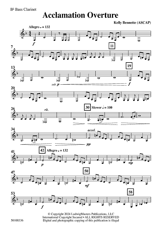 "Acclamation Overture - Bb Bass Clarinet" Sheet Music by Kelly Bennette