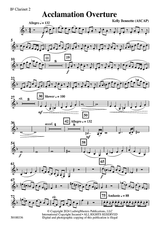 "Acclamation Overture - Bb Clarinet 2" Sheet Music by Kelly Bennette