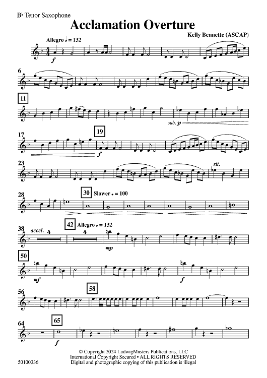 "Acclamation Overture - Bb Tenor Sax" Sheet Music by Kelly Bennette