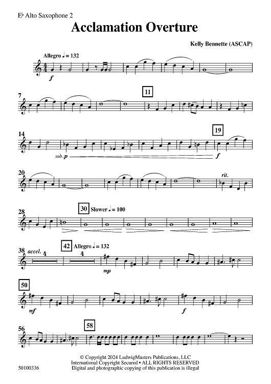 "Acclamation Overture - Eb Alto Sax 2" Sheet Music by Kelly Bennette