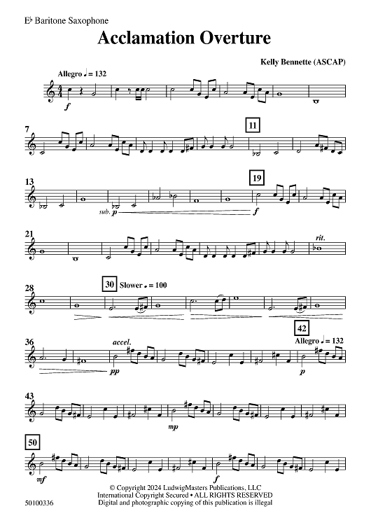 Digital Sheet Music for Acclamation Overture - Eb Baritone Sax by Kelly Bennette scored for Concert Band; id:504022