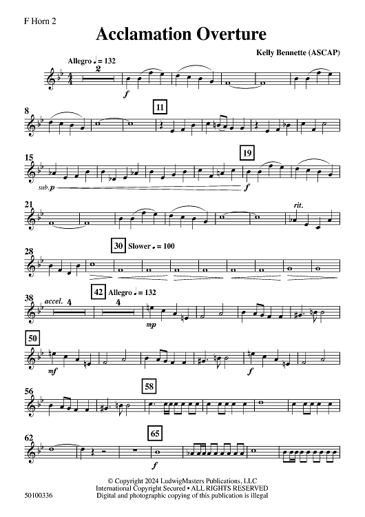 "Acclamation Overture - F Horn 2" Sheet Music by Kelly Bennette