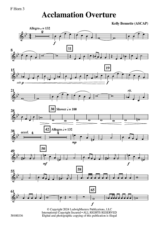 "Acclamation Overture - F Horn 3" Sheet Music by Kelly Bennette