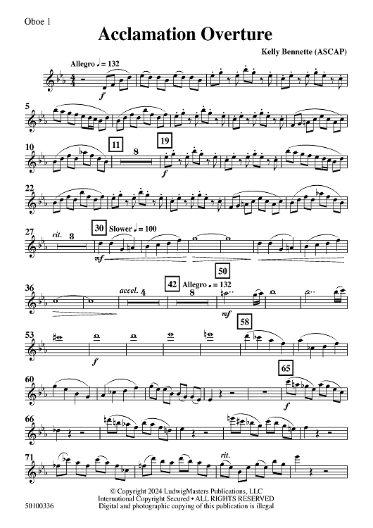 "Acclamation Overture - Oboe 1" Sheet Music by Kelly Bennette