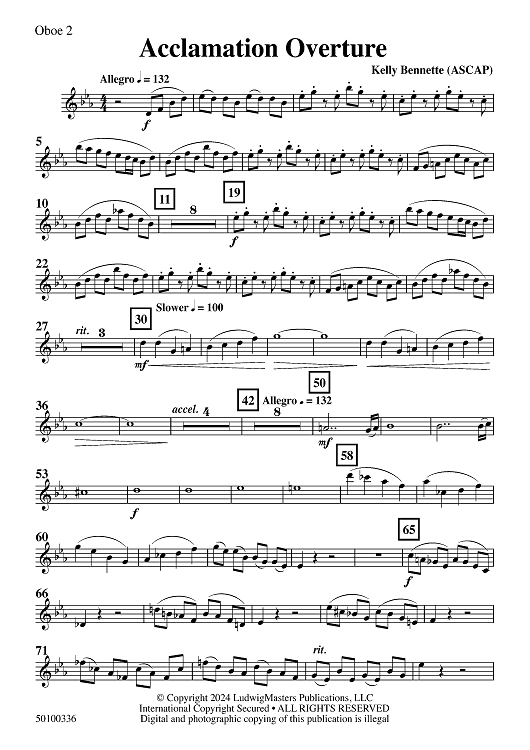 "Acclamation Overture - Oboe 2" Sheet Music by Kelly Bennette
