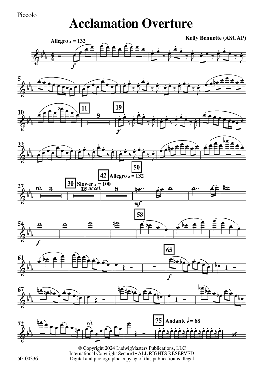 "Acclamation Overture - Piccolo" Sheet Music by Kelly Bennette
