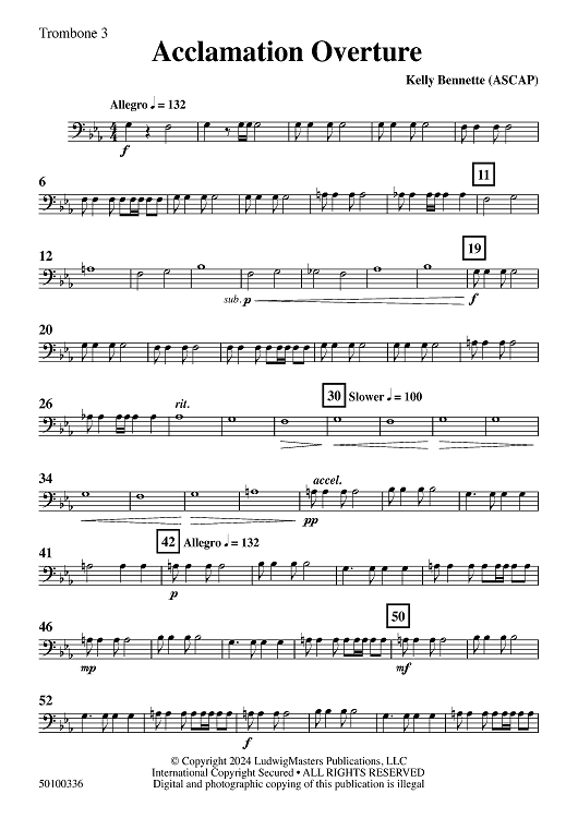 "Acclamation Overture - Trombone 3" Sheet Music by Kelly Bennette