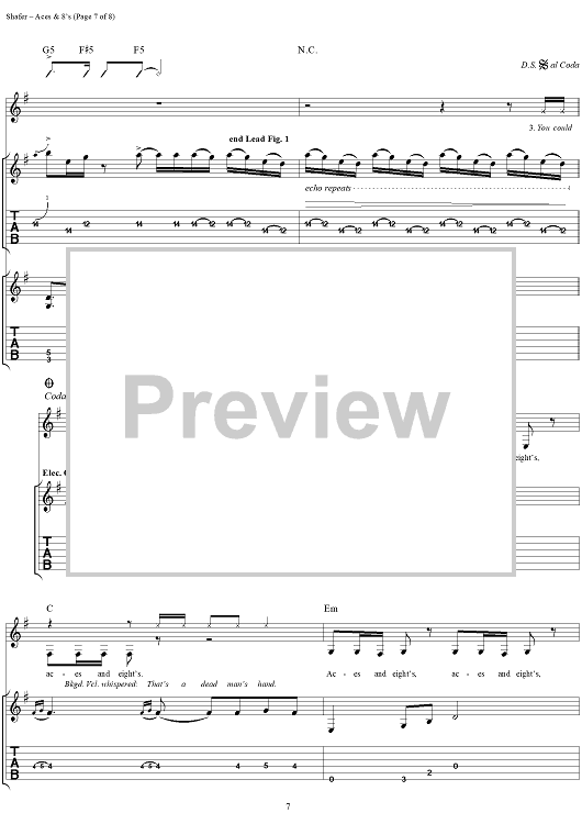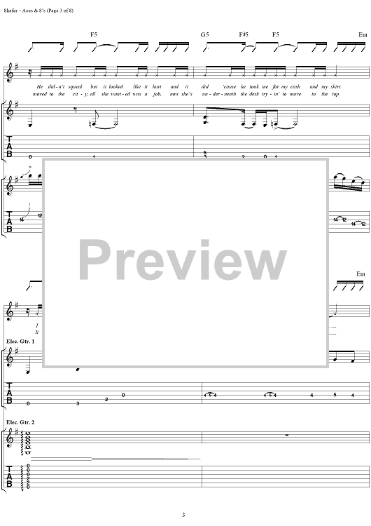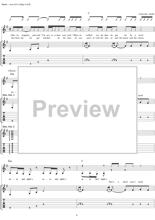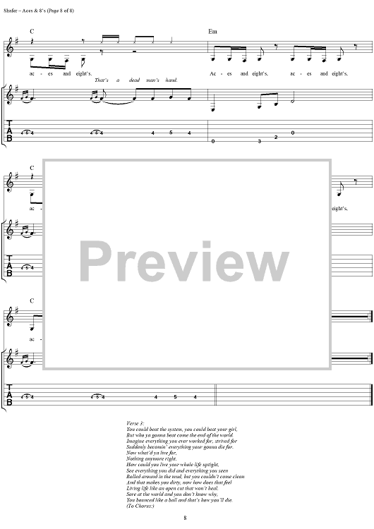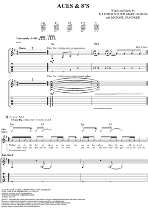 Digital Sheet Music for Aces & 8's by Matthew Shafer, Uncle Kracker, Michael Bradford, Martin Gross scored for Guitar Tab/Vocal; id:285775