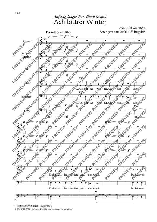 Digital Sheet Music for Ach bittrer Winter by Jaakko Maentyjaervi scored for Mixed Choir (smsatbarb); id:500340