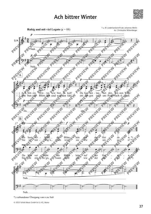Digital Sheet Music for Ach bittrer Winter by Christopher Miltenberger scored for School Choir, Mixed Choir (sab); id:500574