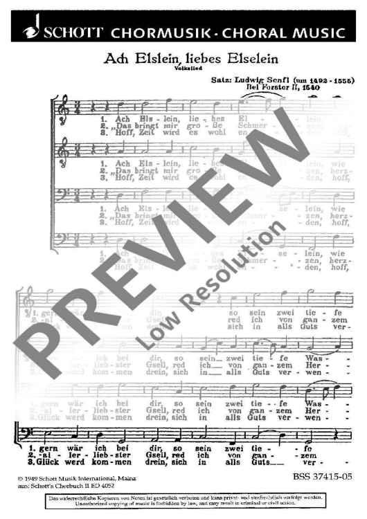 "Ach Elslein - Choral Score" Sheet Music by Ludwig Senfl