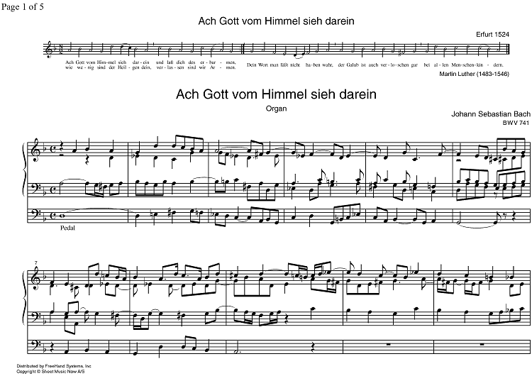 Digital Sheet Music for Ach Gott vom Himmel sieh darein BWV 741 by Johann Sebastian Bach scored for Organ Solo; id:330193