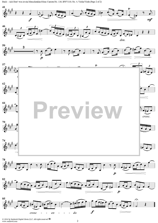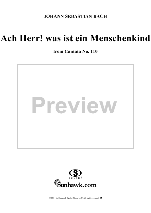 Digital Sheet Music for "Ach Herr! was ist ein Menschenkind", Aria, No. 4 from Cantata No. 110: "Unser Mund sei voll Lachens" - Violin by Johann Sebastian Bach scored for Alto, Oboe d'amore and Piano or Organ; id:303904