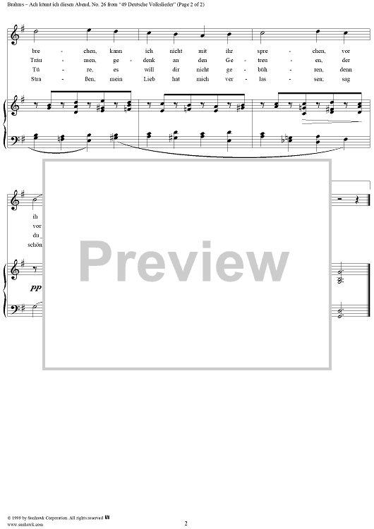 "Ach könnt ich diesen Abend - No. 26 from "49 Deutsche Volkslieder" WoO 33" Sheet Music by Johannes Brahms