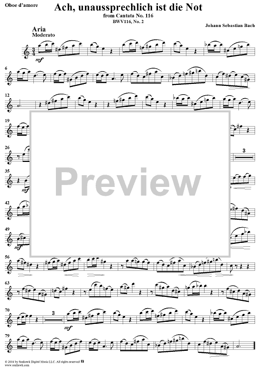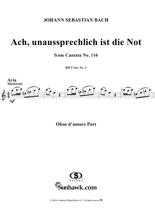 ""Ach, unaussprechlich ist die Not", Aria, No. 2 from Cantata No. 116: "Du Friedefürst, Herr Jesu Christ" - Oboe d'amore" Sheet Music by Johann Sebastian Bach