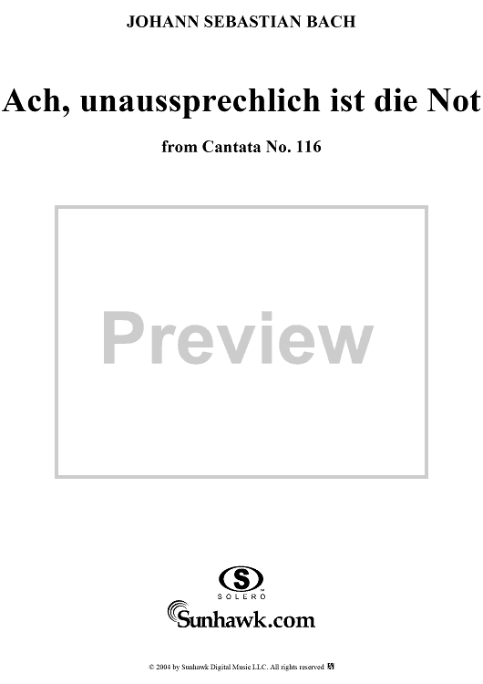 ""Ach, unaussprechlich ist die Not", Aria, No. 2 from Cantata No. 116: "Du Friedefürst, Herr Jesu Christ" - Piano Score" Sheet Music by Johann Sebastian Bach
