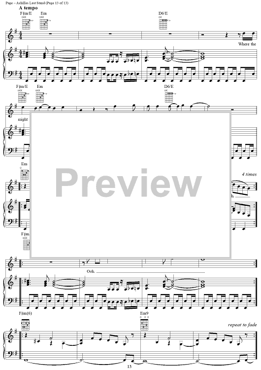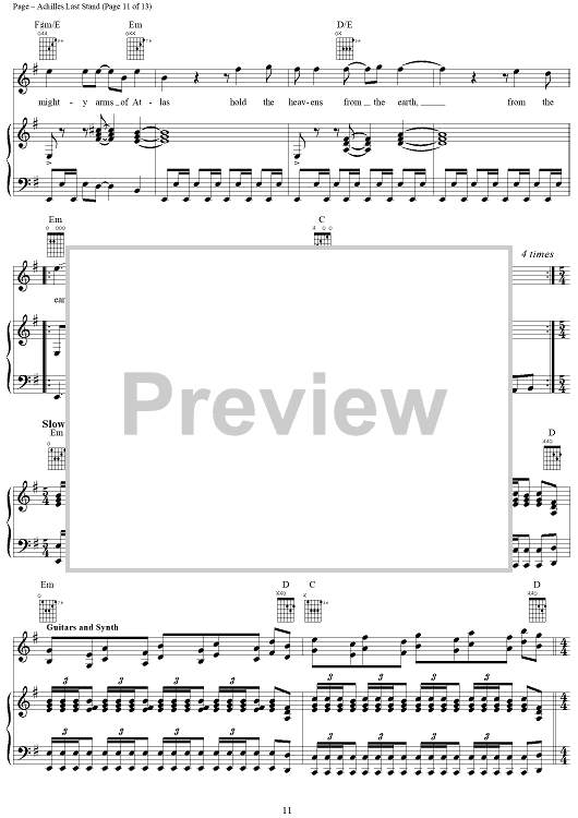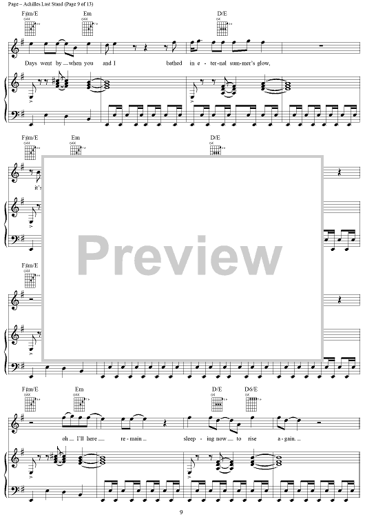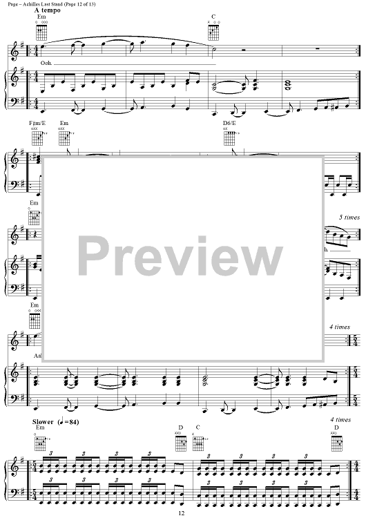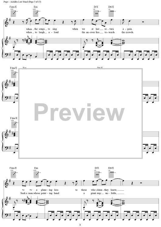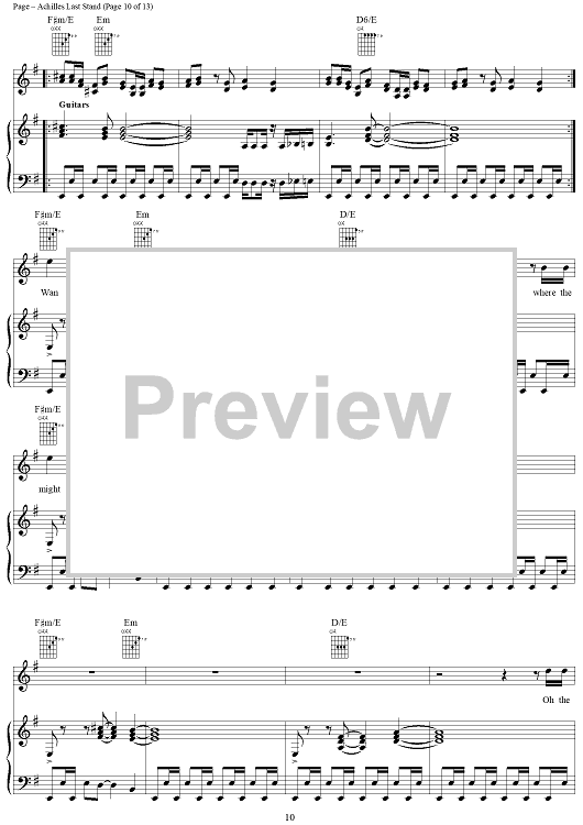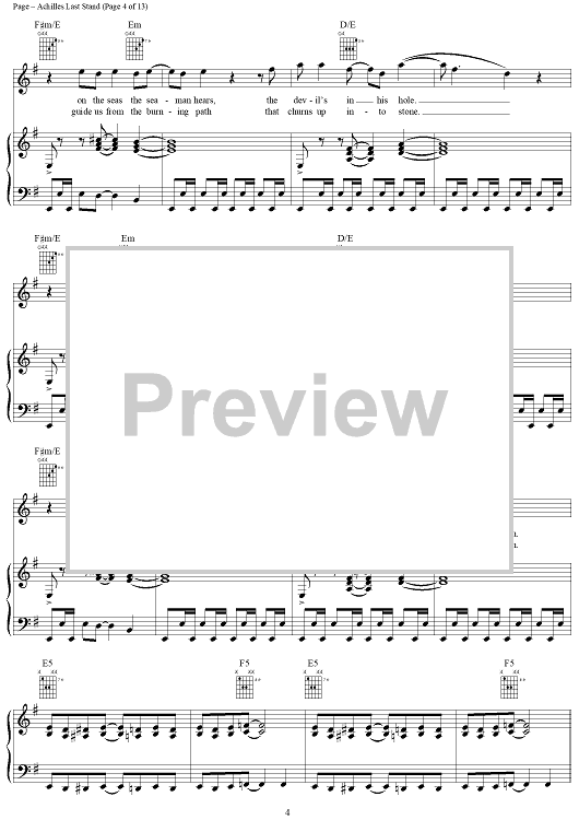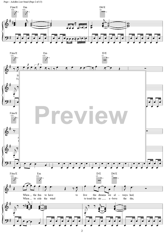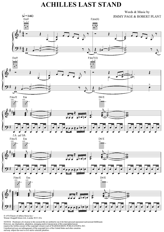 Digital Sheet Music for Achilles Last Stand by Jimmy Page, Led Zeppelin, Robert Plant scored for Piano/Vocal/Chords; id:254046