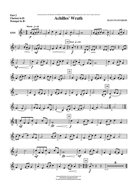 Digital Sheet Music for Achilles’ Wrath - Part 2 Clarinet in Bb / Trumpet in Bb by Sean O'Loughlin scored for Concert Band; id:436193