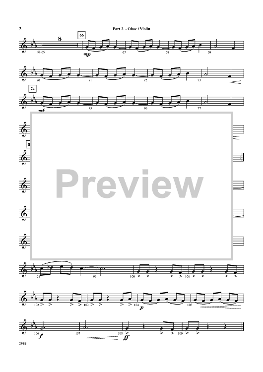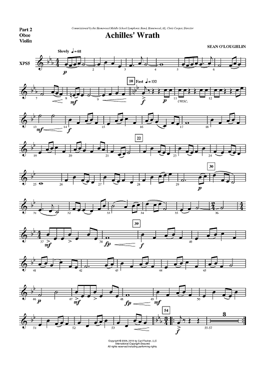 Digital Sheet Music for Achilles’ Wrath - Part 2 Oboe / Violin by Sean O'Loughlin scored for Concert Band; id:436195