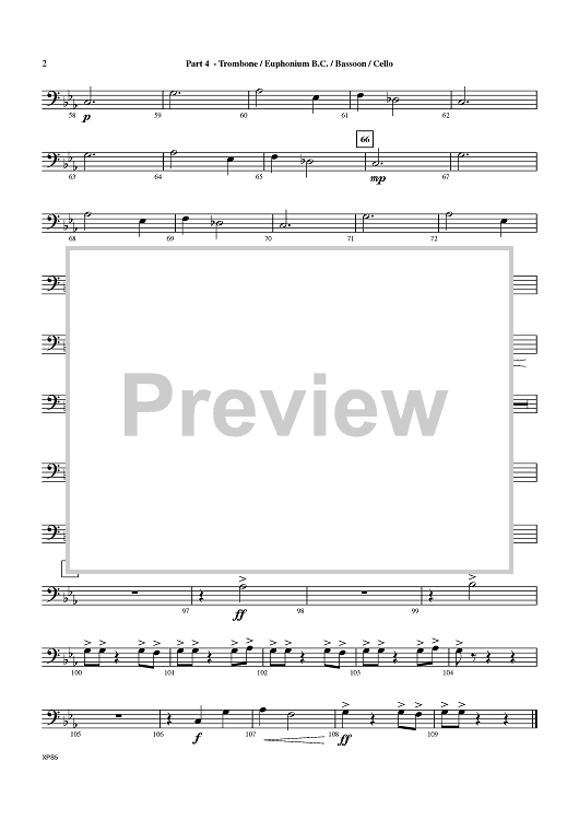 Digital Sheet Music for Achilles’ Wrath - Part 4 Trombone / Euphonium BC / Bassoon / Cello by Sean O'Loughlin scored for Concert Band; id:436204
