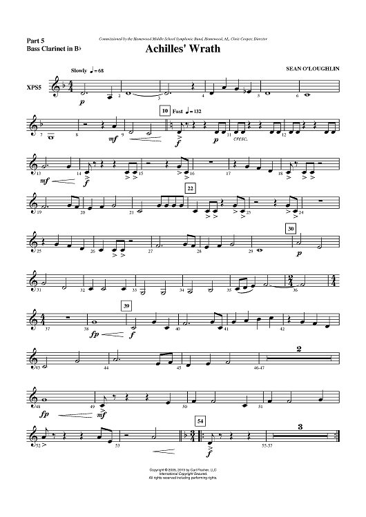 Digital Sheet Music for Achilles’ Wrath - Part 5 Bass Clarinet in Bb by Sean O'Loughlin scored for Concert Band; id:436205