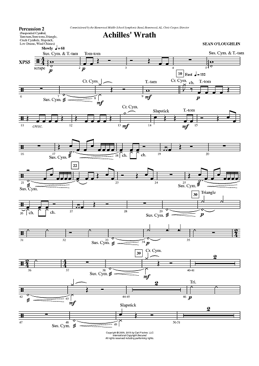 Digital Sheet Music for Achilles’ Wrath - Percussion 2 by Sean O'Loughlin scored for Concert Band; id:436214
