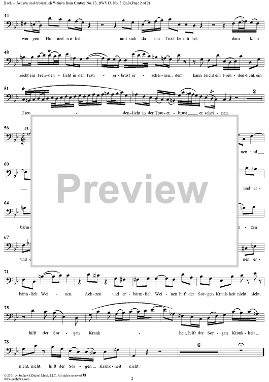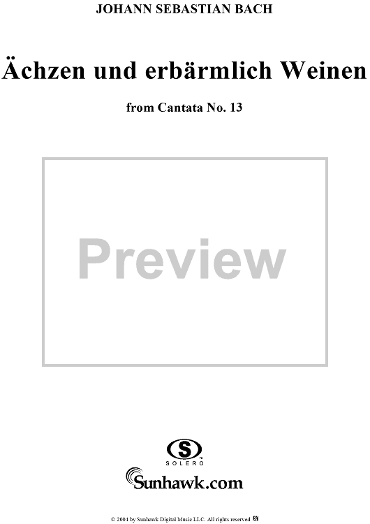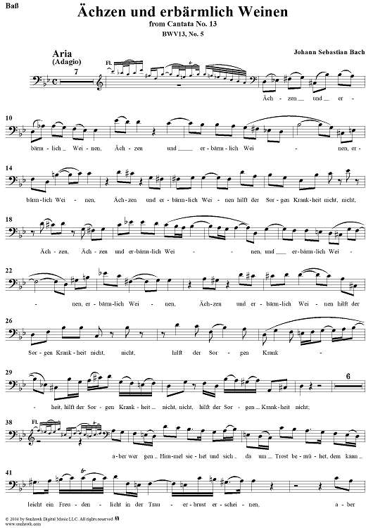 Digital Sheet Music for "Ächzen und erbärmlich Weinen", Aria, No. 5 from Cantata No. 13: "Meine Seufzer, meine Tränen" - Bass by Johann Sebastian Bach scored for Bass, Violin or Flute and Piano or Organ; id:303636
