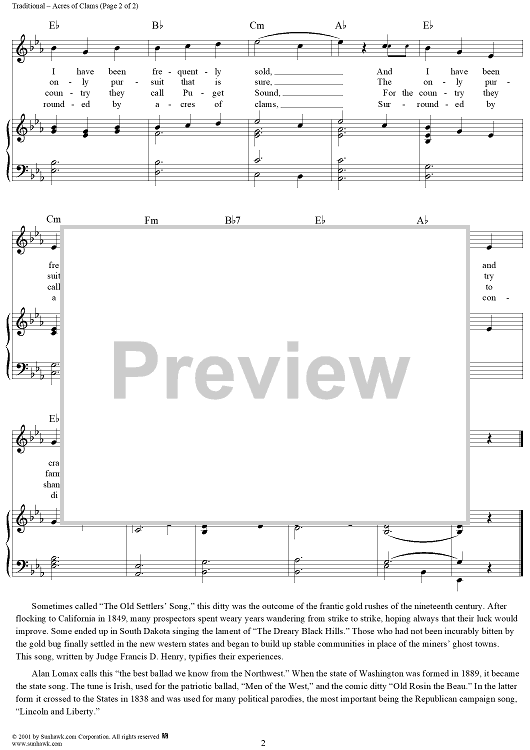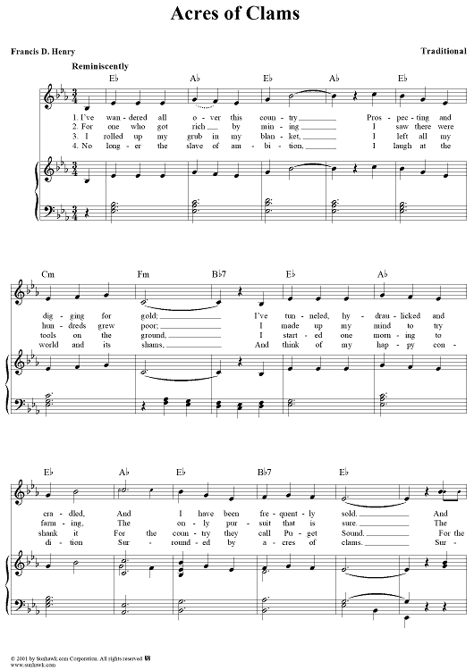 Digital Sheet Music for Acres of Clams by Francis D. Henry, Traditional scored for Piano/Vocal/Chords; id:260796
