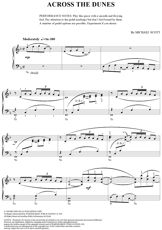 Digital Sheet Music for Across The Dunes by Michael Scott scored for Piano Solo; id:257078