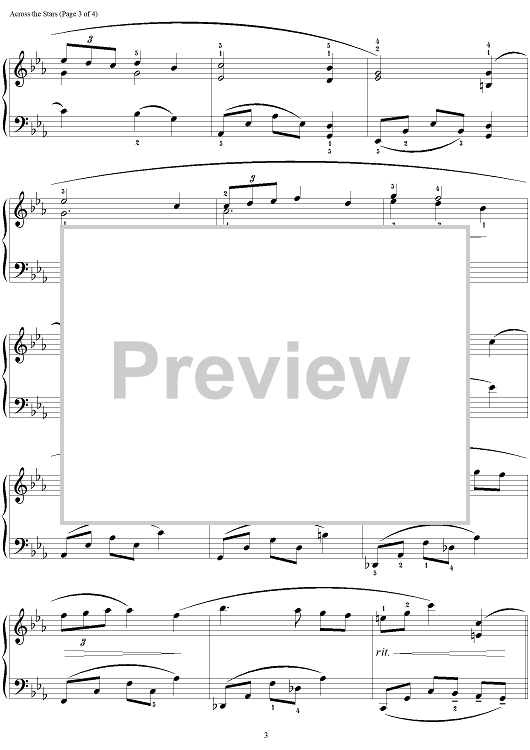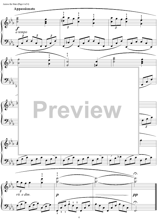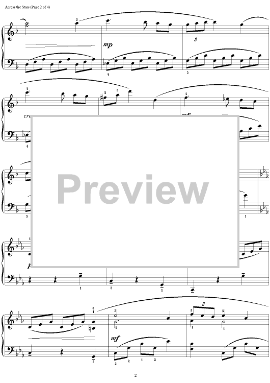 Digital Sheet Music for Across the Stars by Dan Coates, John Williams scored for Easy Piano; id:291150