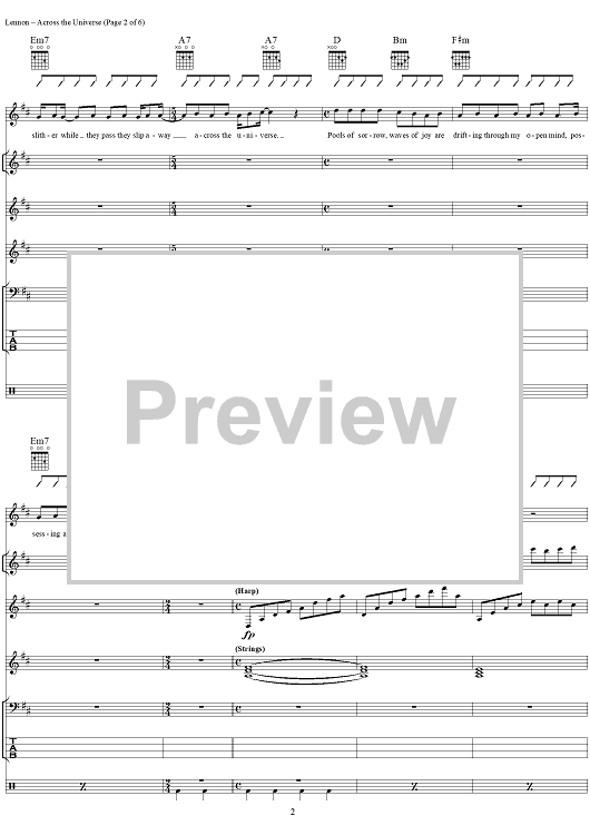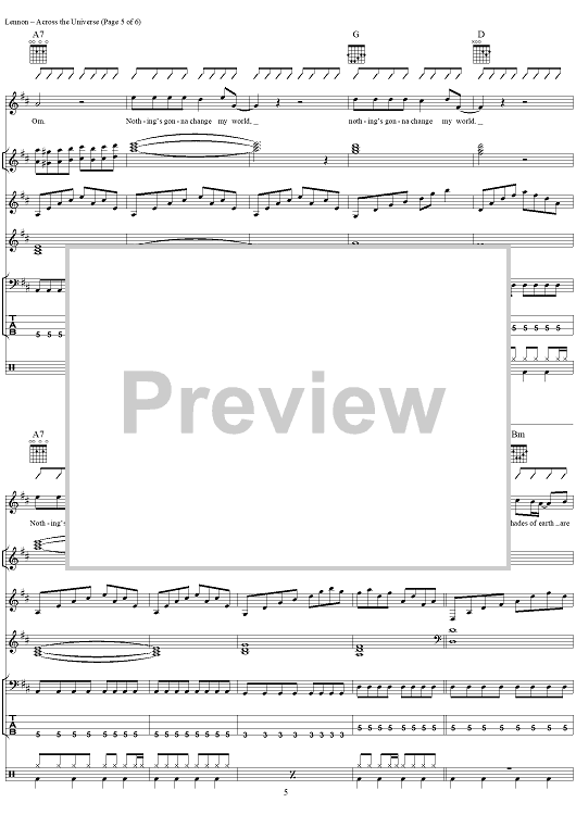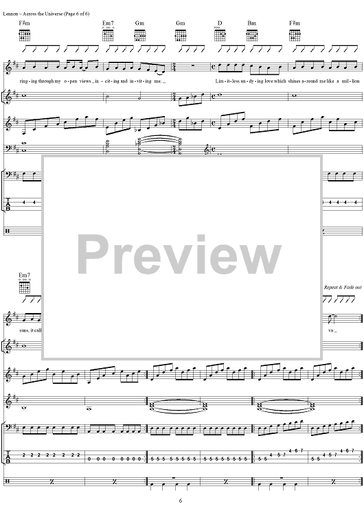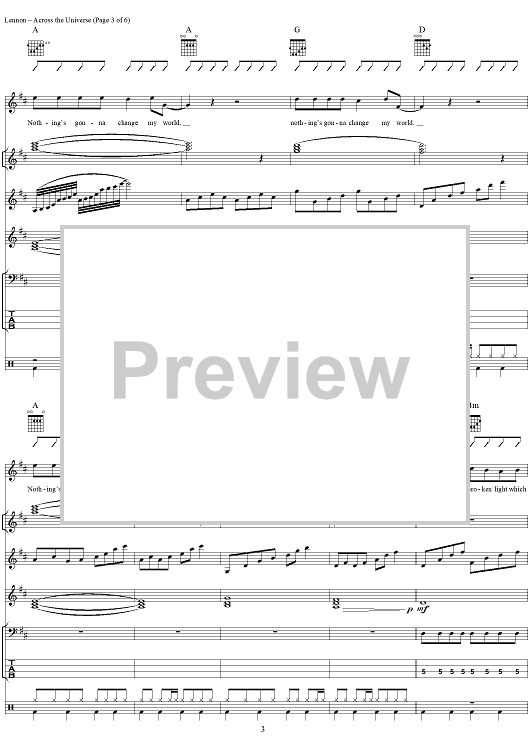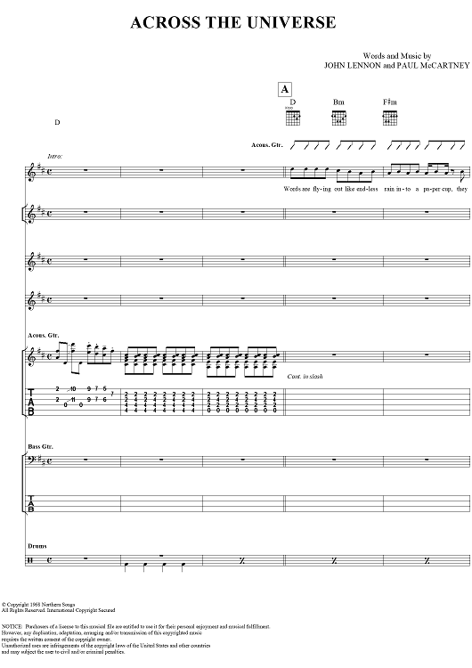"Across the Universe" Sheet Music by The Beatles