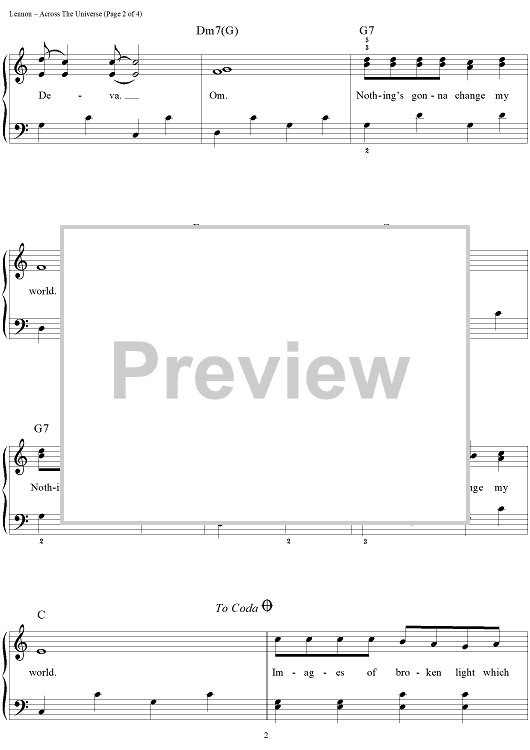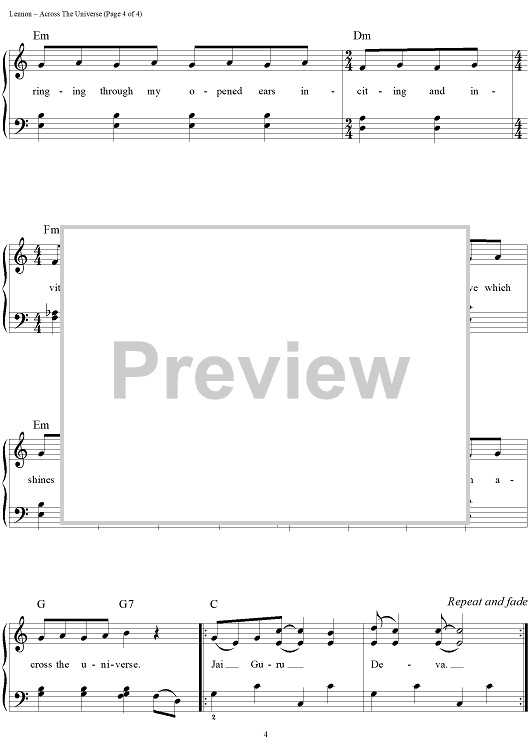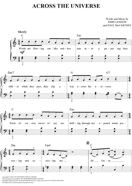 Digital Sheet Music for Across the Universe by Paul McCartney, The Beatles, John Lennon scored for Easy Piano/Vocal/Chords; id:448099