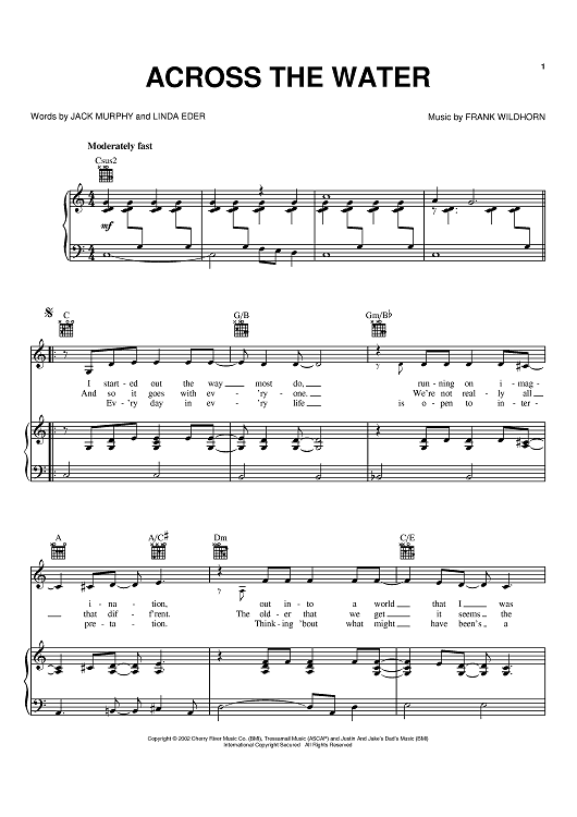 Digital Sheet Music for Across The Water by Linda Eder, Frank Wildhorn, Jack Murphy scored for Piano/Vocal/Chords; id:371883