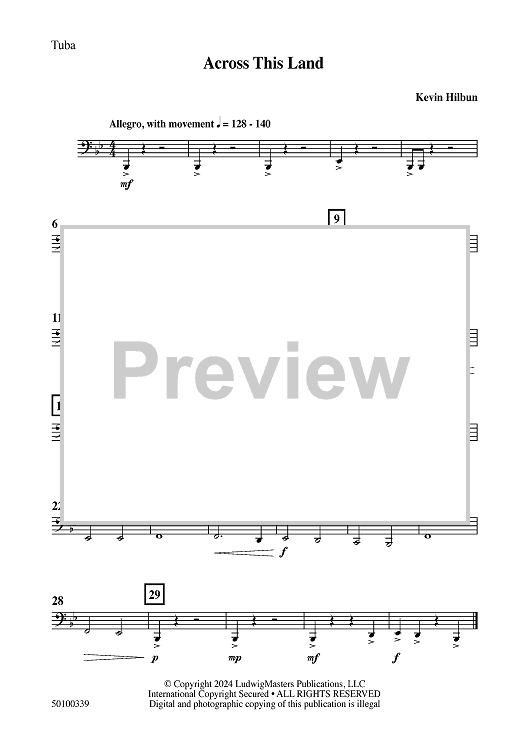 Digital Sheet Music for Across This Land - Tuba by Kevin Hillbun scored for Concert Band; id:504057