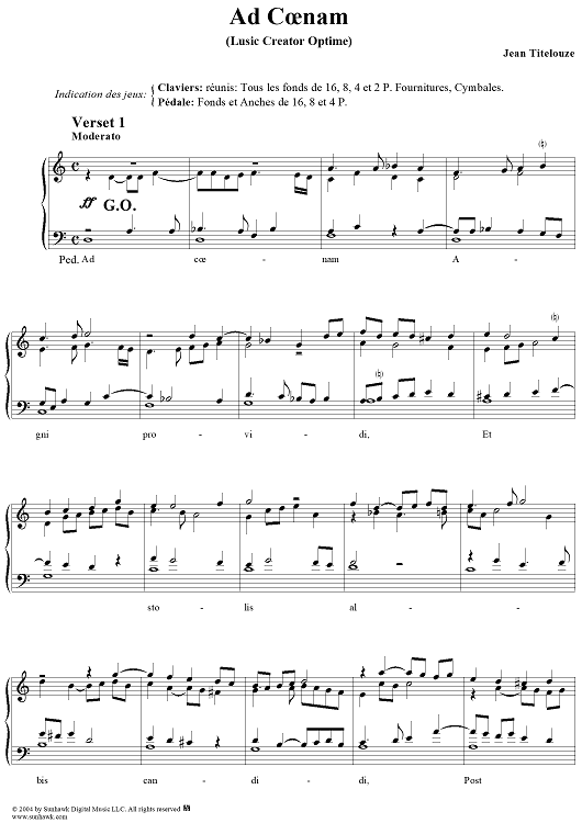 Digital Sheet Music for Ad Coenam (4 versets) by Jean Titelouze scored for Organ Solo; id:296092