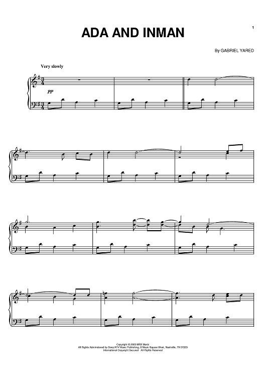 Digital Sheet Music for Ada And Inman by Gabriel Yared scored for Piano; id:374499